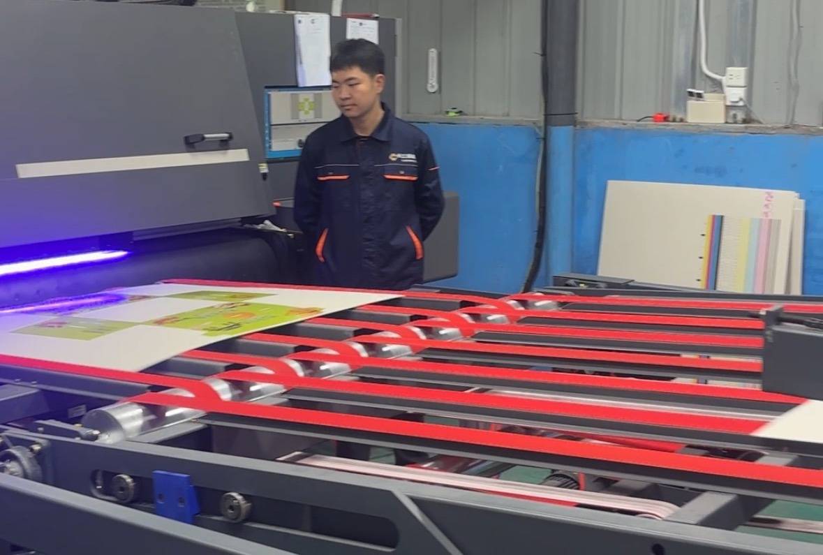 没有现成技术可借鉴,团队只能用“笨办法”攻坚克难——试配方、改设备、调温度。2024年国庆节,长江国鹏总经理王长宏带领团队连续7天驻守车间,完成3000余次试验,终于攻克水分控制难题,成功拉出第一块成型、达标、可循环使用的板材。