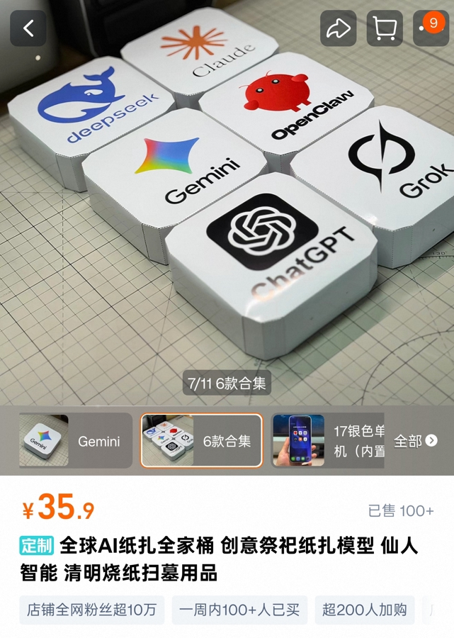 清明节期间,纸扎祭祀用品热销。在电商平台上,有个别商家推出了“AI大模型纸扎”,引发网友热议。