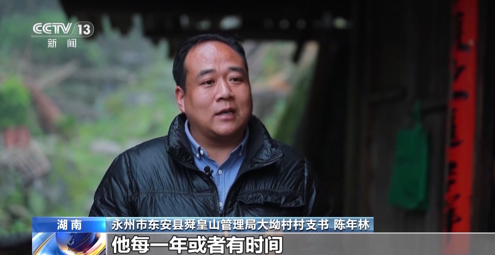 永州市东安县舜皇山管理局大坳村村支书 陈年林:他每年或者说只要有时间,都要把这个墓守好、扫好,要完成他父亲的遗愿。本来他家里有三口人,还可以安置到东安县安置点,他放弃了,没有要。