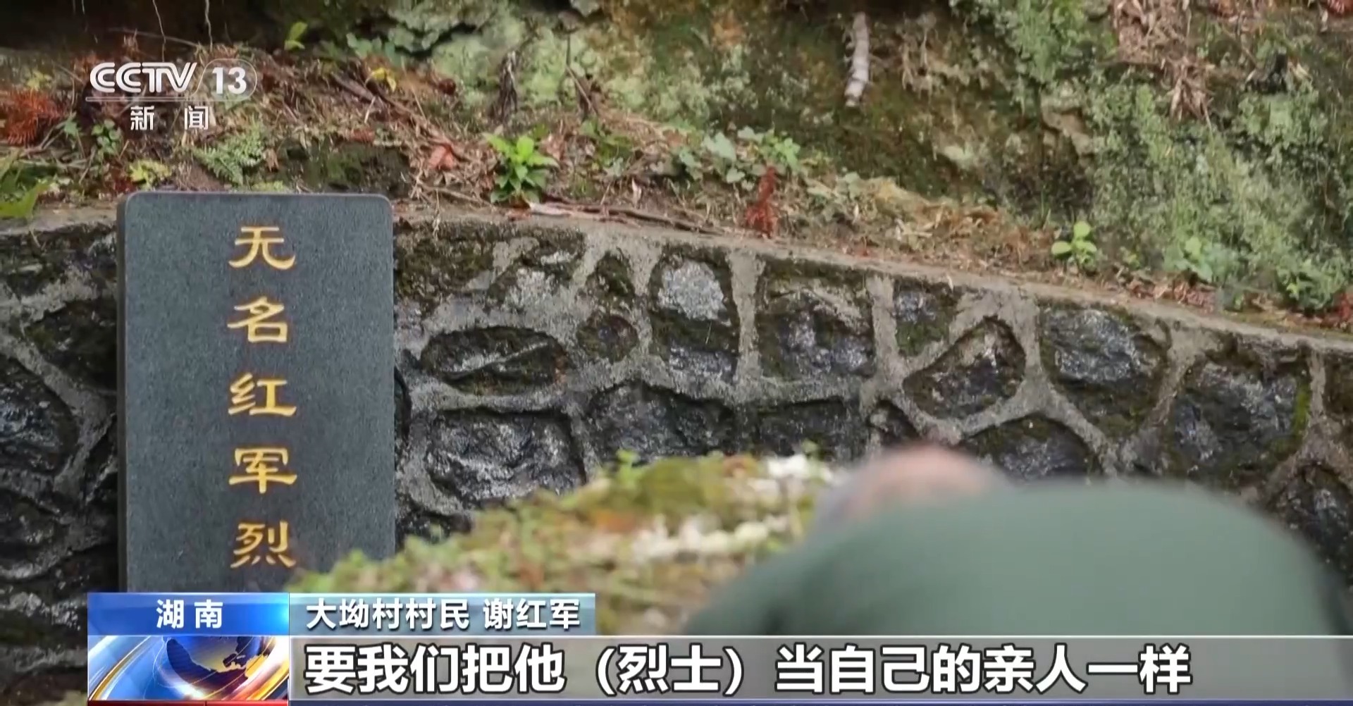 守墓人 谢红军:我爷爷交代我父亲,每年清明节,逢年过节,过年的时候,都要去祭拜。大约我五六岁的时候,我爸爸带我去给无名红军烈士扫墓,他说以后他走不动了,为无名红军烈士扫墓这件事,你们要继续传承下去。