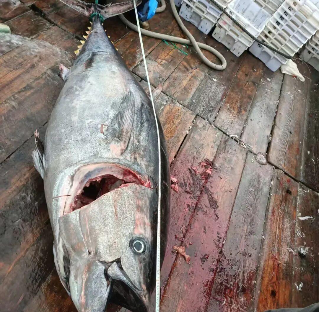 正在海上作业的船老大范吉通,与记者视频连线时难掩激动。“我捕鱼三十多年,常年在东海作业,还是头一回见到这么大的金枪鱼,而且一次就遇上了两条。”