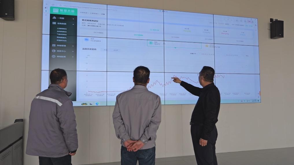 在沧州市东光县一处农业产业园的智慧大厅内,工作人员正在操作智慧农业管理系统。