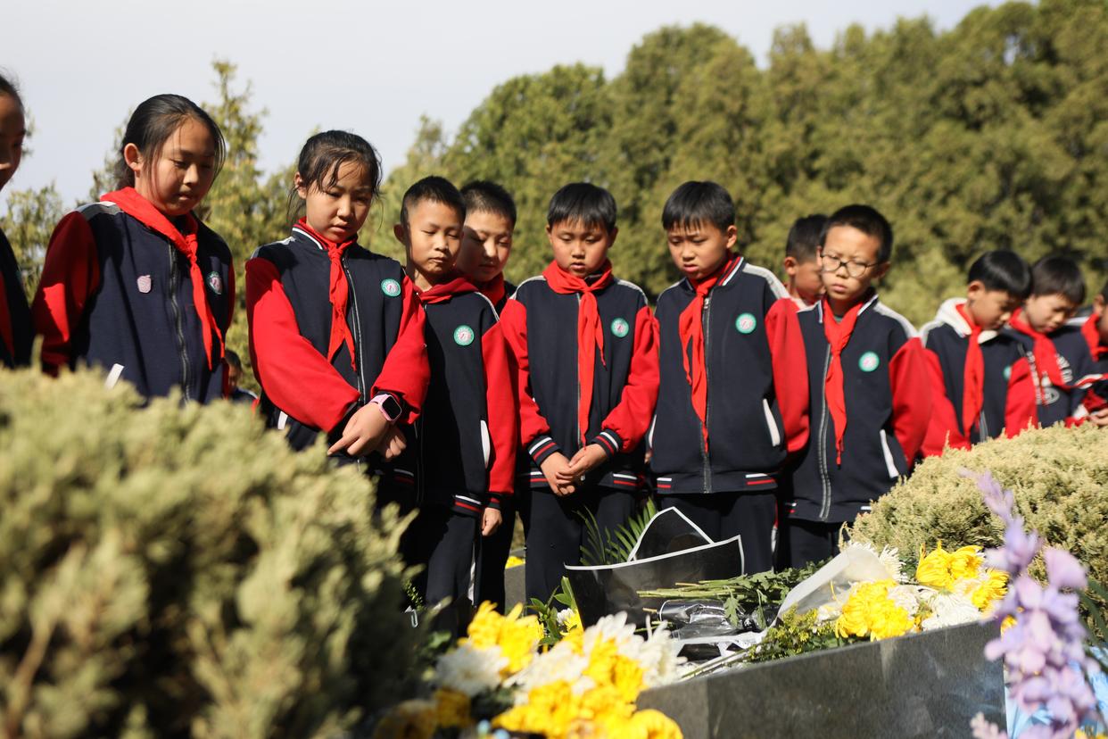 3月31日,小学生在兰州市烈士陵园内祭奠烈士。新华社记者 张睿 摄