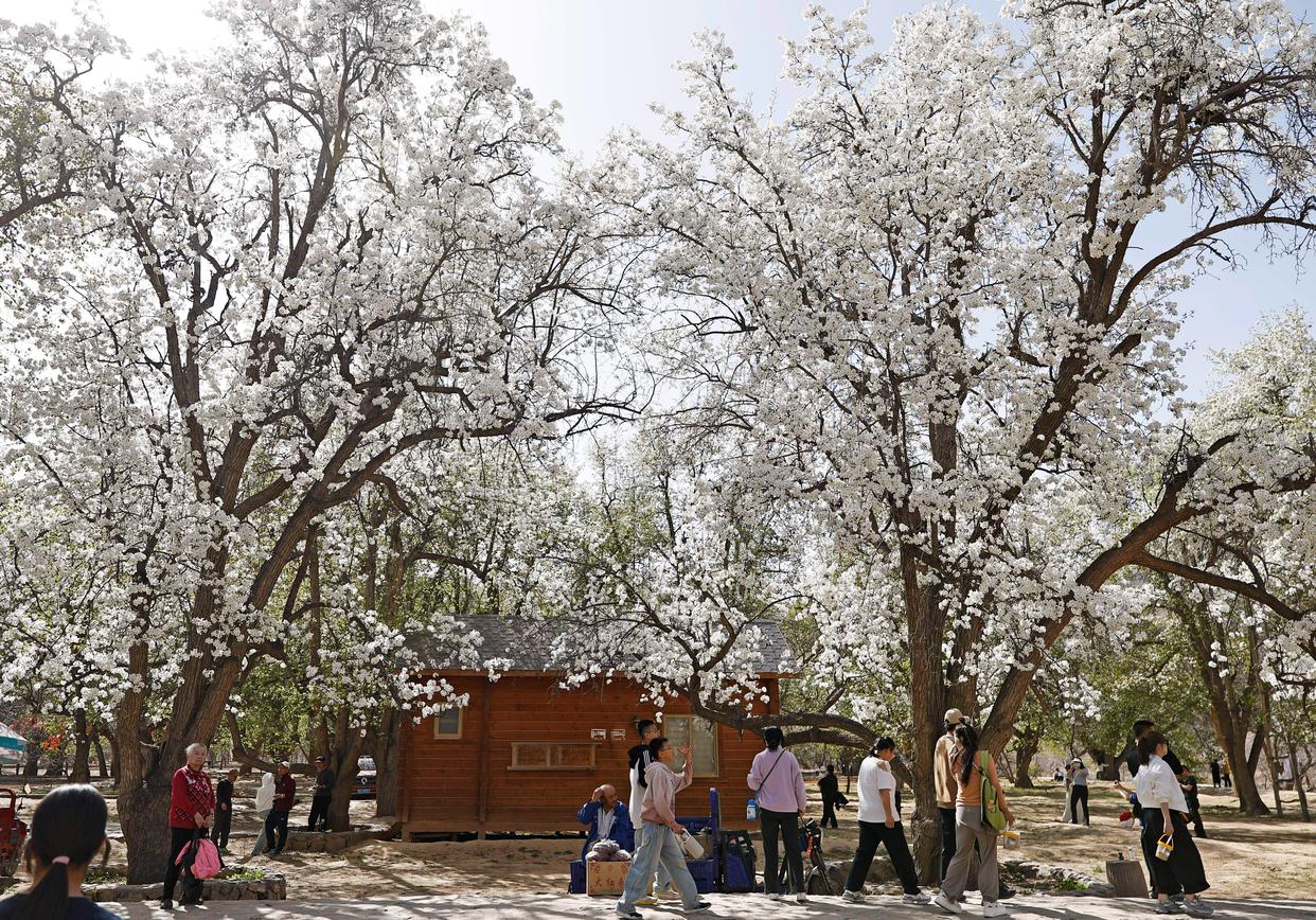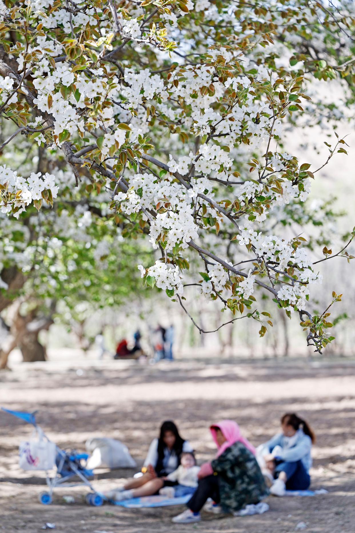 4月6日,游客在南长滩欣赏梨花。新华社记者 王鹏 摄