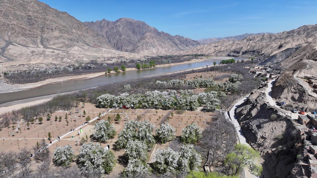 进入4月,位于宁夏中卫市沙坡头区黄河岸边南长滩村、北长滩村的数百棵百年梨树迎来盛花期。当地举办梨花节,吸引众多游客前来感受黄河岸边百年梨花与古村落的魅力。