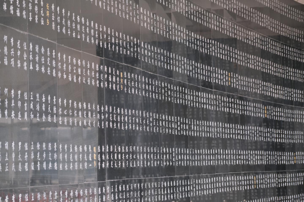 川陕革命根据地红军烈士陵园内,镌刻着红军烈士姓名的英烈纪念墙。新华社记者高玉娇 摄