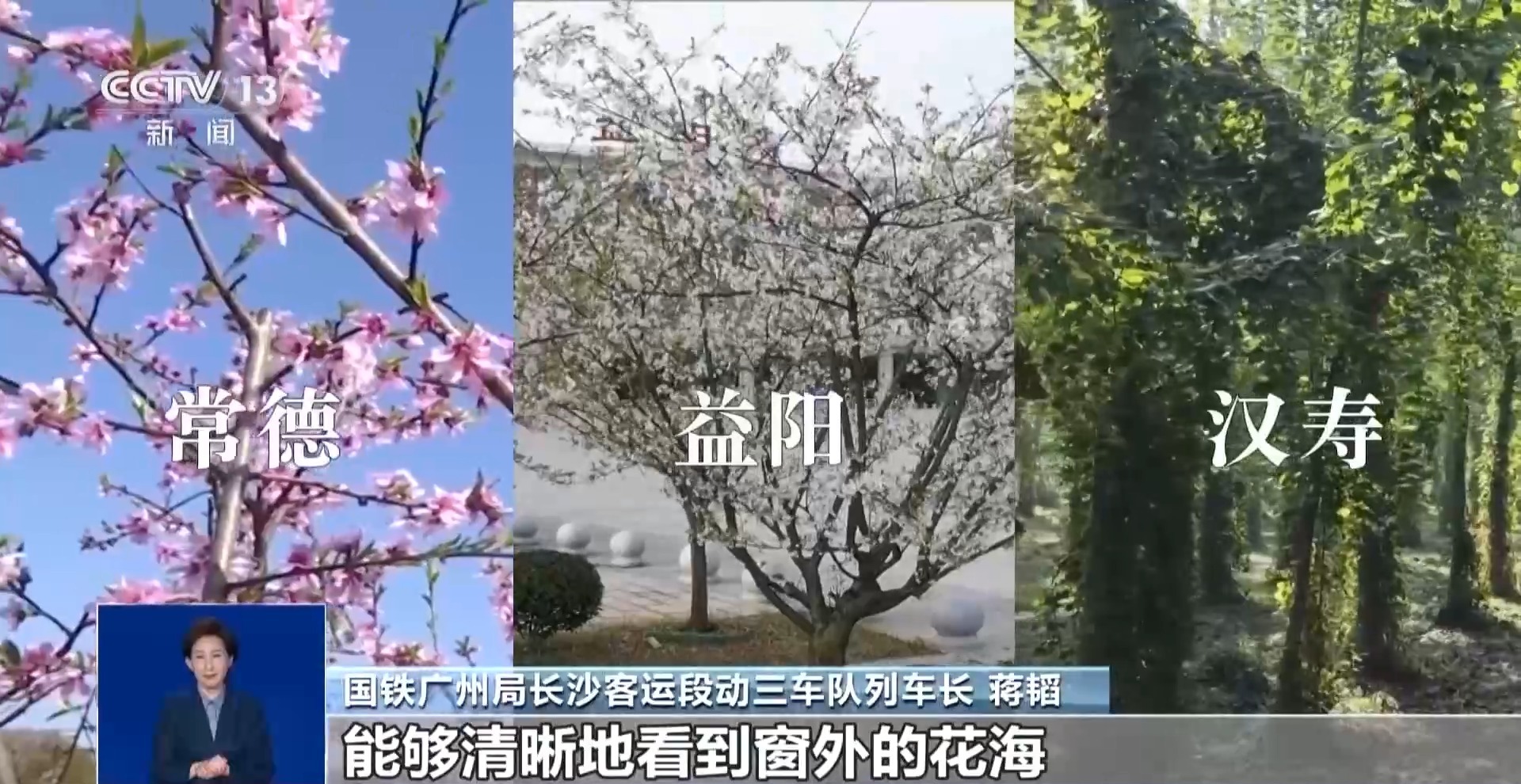 渝厦高铁常益长段,西起常德,东至长沙,全长154公里,设有5座车站。眼下,这条线路是游客前往汉寿县赏花的热门选择。从长沙站出发,车行15分钟后,车窗外就已是满眼春色。