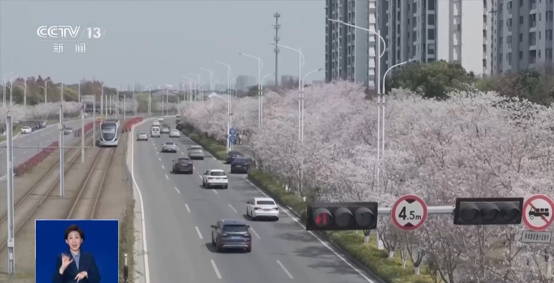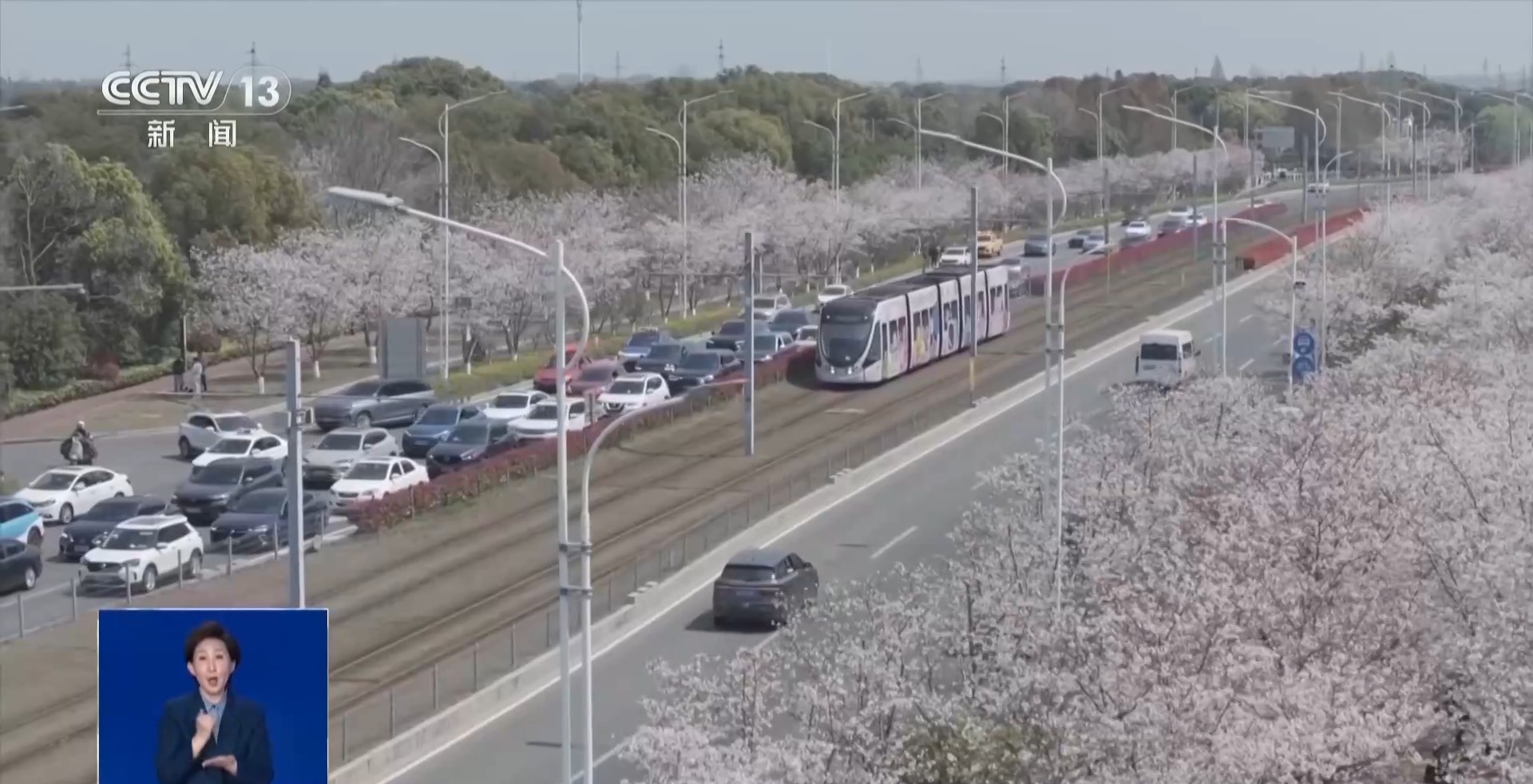 有轨电车“一路生花” 穿行樱海邂逅春光