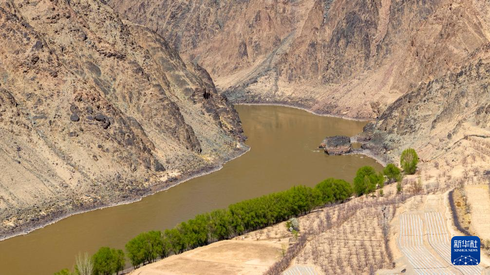 春日的宁夏中卫市南长滩村,黄河水蜿蜒流淌,岸边绿芽初绽,村里梨花竞相开放,勾勒出一幅生机盎然的黄河春景图。