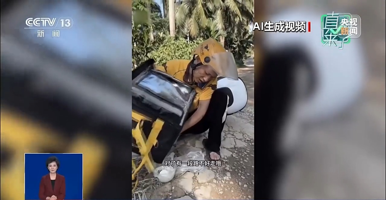 今年2月,这段外卖员将撒落在外卖箱里的面条,重新装盒配送的短视频在网上传播,造成恶劣影响。经警方调查,该视频完全由AI生成。