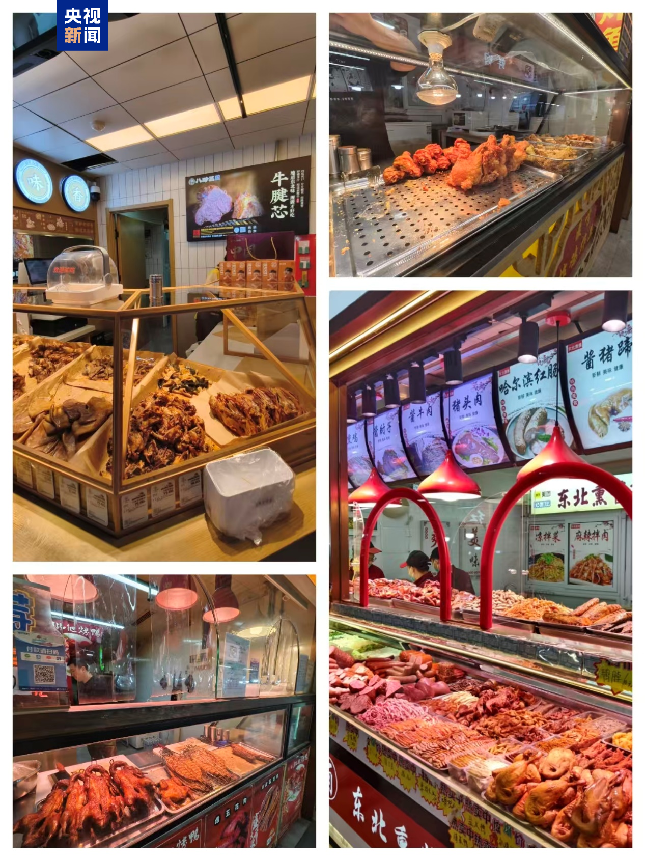 记者在北京市朝阳区的部分大型农贸市场、连锁超市以及路边底商进行实地探访。在一家规模较大的朝阳区农光里市场,这里几乎所有熟食档、炸货档以及部分干货档口都使用不同程度的暖色照明灯,让食品看起来更加油光诱人。