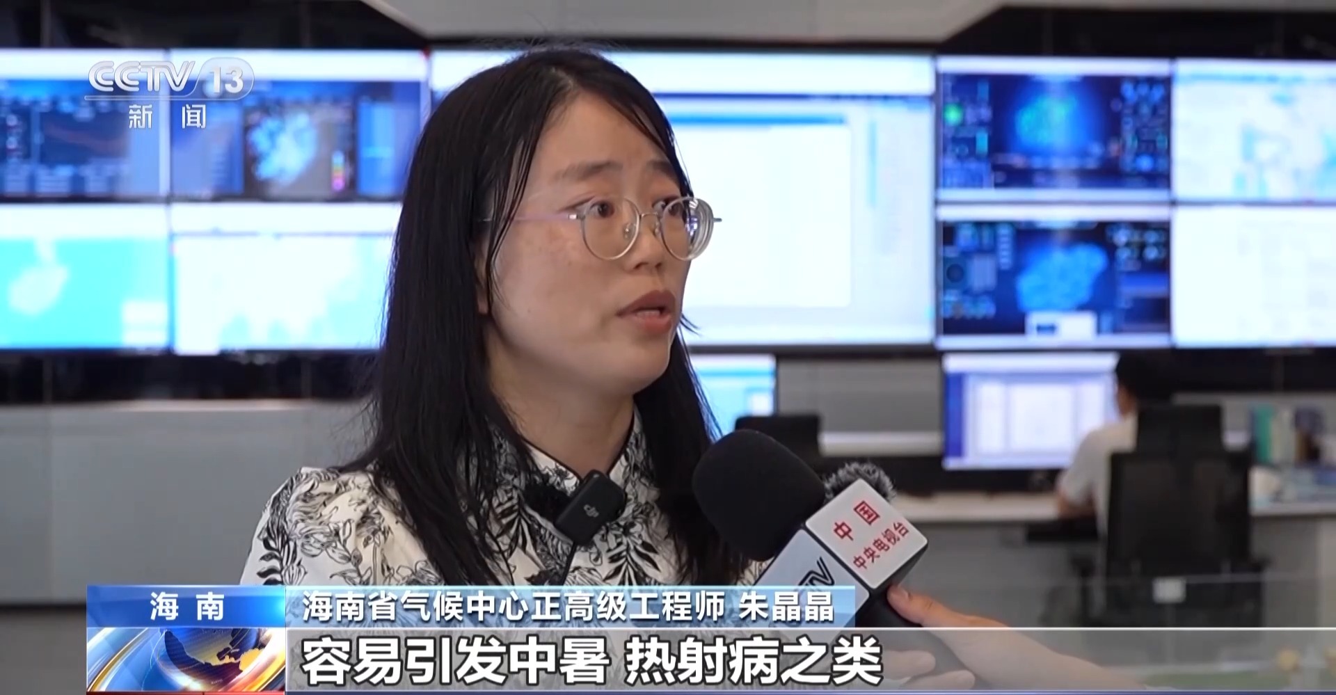 海南省气候中心正高级工程师 朱晶晶:高温天气比较多,容易引发中暑、热射病之类,也可能导致皮肤不适,所以大家要做好防护。在出行和旅游上,中午太阳比较大,建议选择室内或者是晚上再出门。