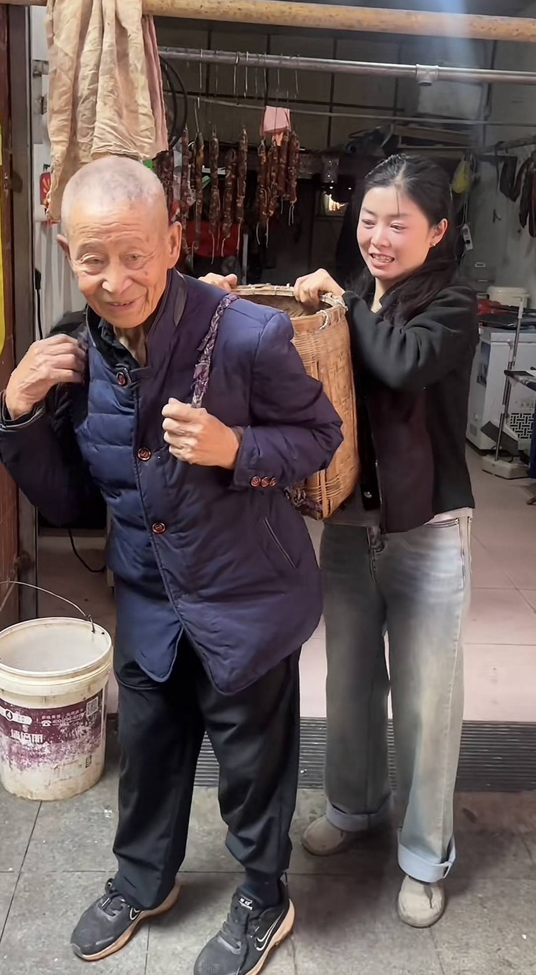 4月9日上午,黎欢再次偶遇那位老人。她立刻上前,把网友的心意转达给老人,并细心挑选了适合老人食用的五花肉和排骨,装了满满一大袋。