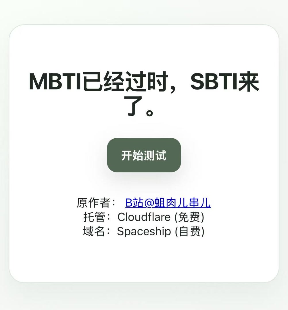 “MTBT已经过时,SBTI来了”,4月9日晚间,一款名为SBTI(Silly Big Personality Test,即“傻大个性格测试”)的心理测试在朋友圈疯狂刷屏,并登上微博热搜。截至记者发稿,#SBTI人格测试#的话题,阅读量已超过1946.1万。