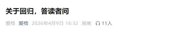 9日下午,《爱格》再次发文:关于回归,答读者问