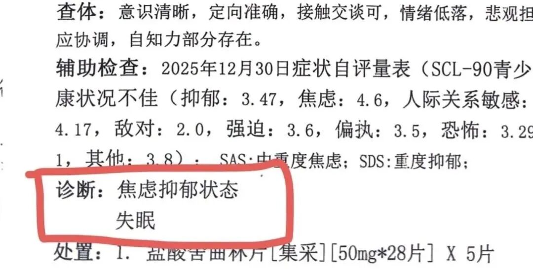 张正表示,女儿身体逐渐恢复,但心里受到严重伤害。据医院心理咨询门诊《门诊病历》显示,女儿被诊断为焦虑抑郁状态、失眠。