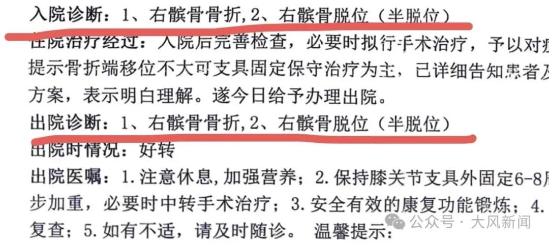 据张欣的病历,入院诊断为“右髌骨骨折,右髌骨脱位(半脱位)”,遂支具固定保守治疗。2026年1月8日,张欣出院。