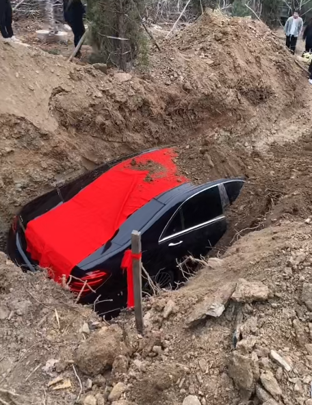 真车土葬?近日,多段“奔驰轿车被’下葬’”视频在网络流传,引发关注。视频显示,一辆悬挂“辽K”号牌的奔驰汽车被吊入土坑中掩埋。