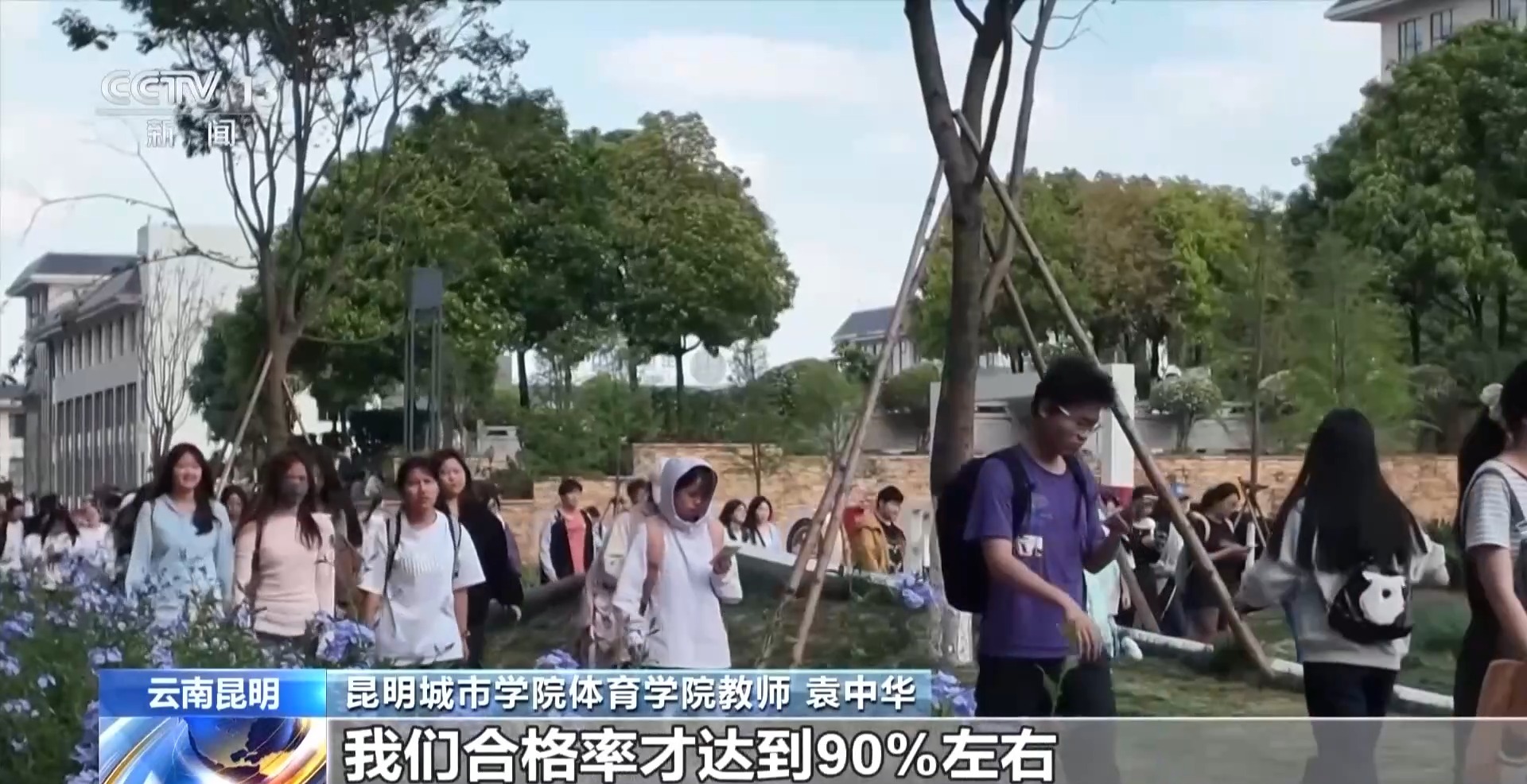 昆明城市学院体育学院教师 袁中华:心肺耐力不好,力量、核心、柔韧都不太理想,从我们学校体质健康测试的数据来看,合格率才达到90%左右,优秀率是明显在20%以下的。