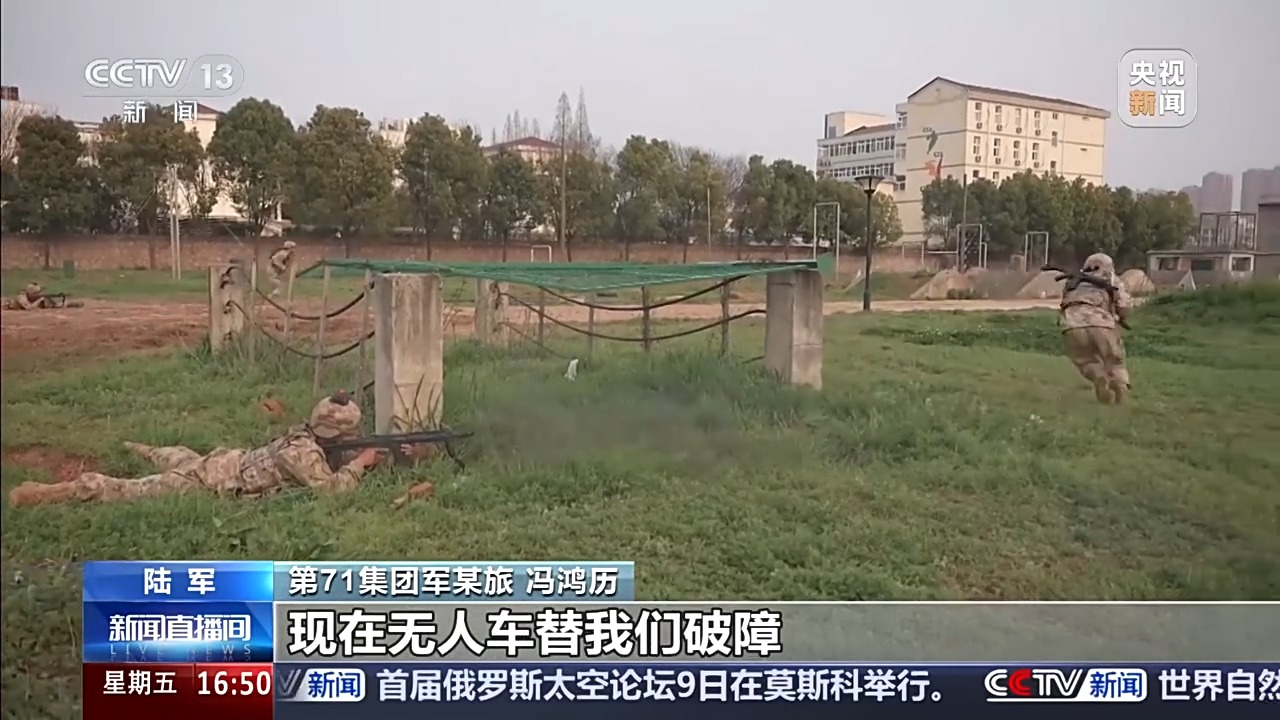 第71集团军某旅 冯鸿历:以前碰到这种混合障碍,我们得人上去爆破障碍,多一分钟就多一分风险。现在无人车替我们破障,我们在后面遥控操作,速度快了,人员也减少了伤亡。