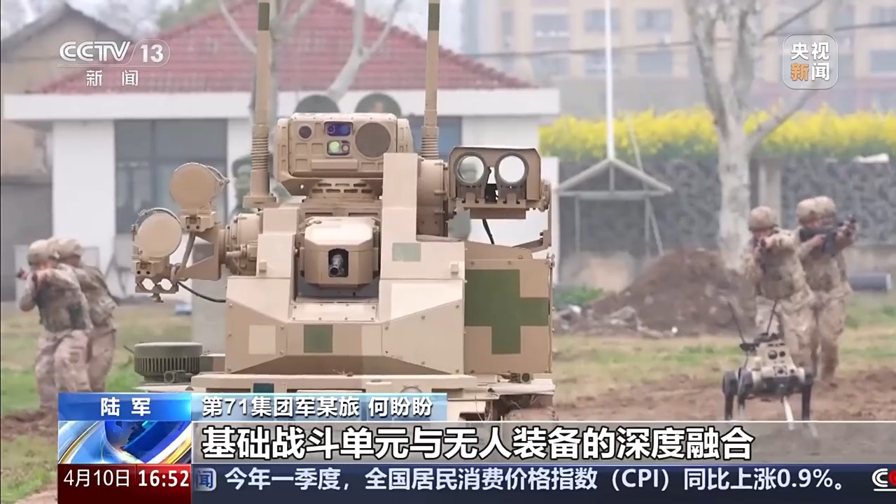 第71集团军某旅 凌明东:隐蔽火力点往往在看不到的地方。我们让无人车冲在前面,执行侦察和火力压制,并把实时画面传回来;步兵根据画面判断敌情,再引导无人车打击,形成了一套有人无人协同作战的打法。