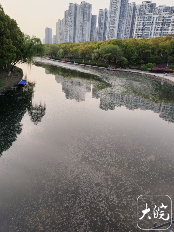 合肥市匡河河面上漂着一层杨柳絮。