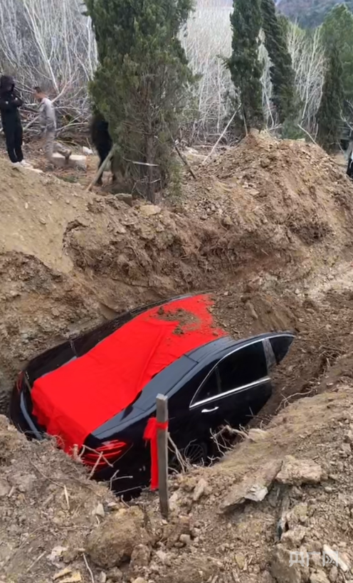 4月9日,一段记录车牌尾号为“辽*8888*”的奔驰车被埋入墓坑的视频引发关注。