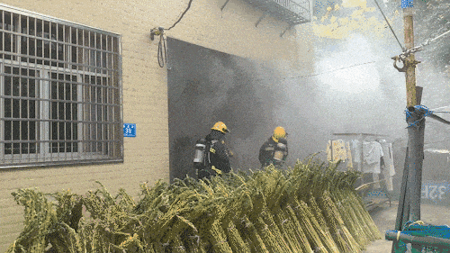 消防员接警后火速赶赴现场