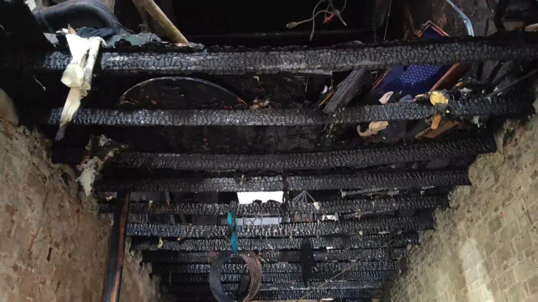 (三楼地板被烧穿)