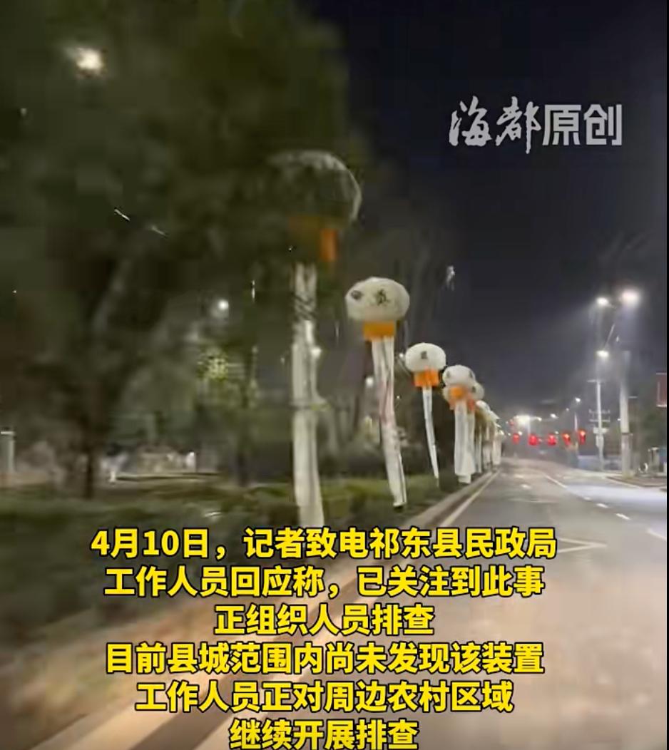记者核实到拍摄地位于湖南省衡阳市祁东县,4月10日,记者致电祁东县民政局,工作人员回应称,已关注到此事,正组织人员排查。目前县城范围内尚未发现该装置,工作人员正对周边农村区域继续开展排查。
