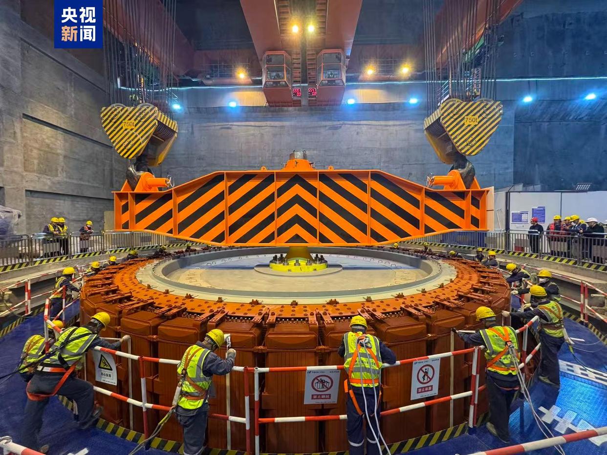 拉哇水电站位于四川省巴塘县与西藏自治区芒康县交界,是国家“十五五”规划重点建设的金沙江上游水风光一体化基地重要组成部分,总装机容量200万千瓦,是同类型项目中坝高最高的混凝土面板堆石坝电站。本次吊装的首台机组转子直径13.43米,高3.10米,总重量约1007吨,是拉哇水电站机组重量最大的部件。