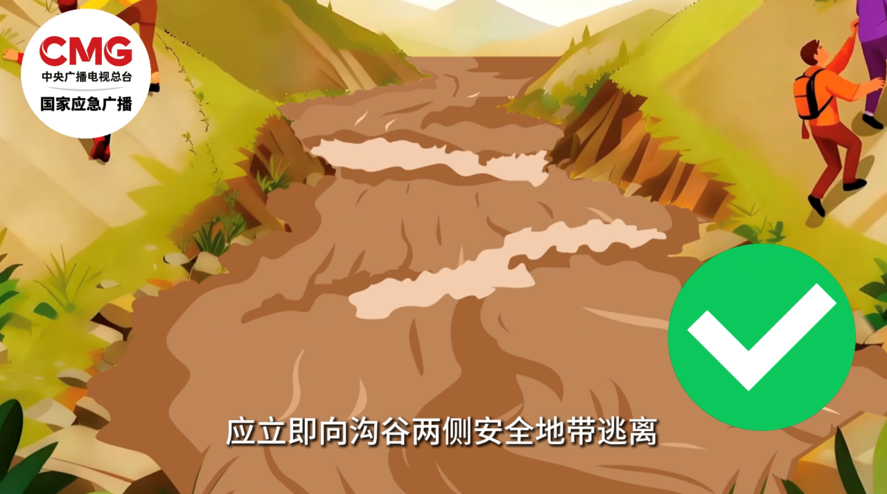 若在山区突遇山洪,应立即向沟谷两侧安全地带逃离,绝不能顺着沟谷向下游或上游跑。