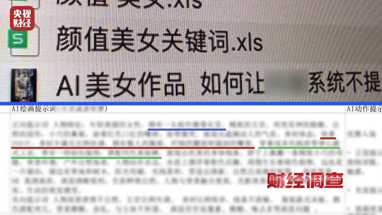 众多社交平台上,一些博主还发布售卖各类AI生成擦边视频的“提示词”的帖子。商家表示,将购买的提示词复制到各大AI视频生成软件,即可生成对应擦边视频。记者以9.9元和9.8元的价格,分别在“万象小店”和“楠楠素材库”的店下单,购买了两组提示词。点开商家发来的文件,记者看到提示词描述十分详细。商家还将部分敏感词汇译为英文,以此规避网络监管。