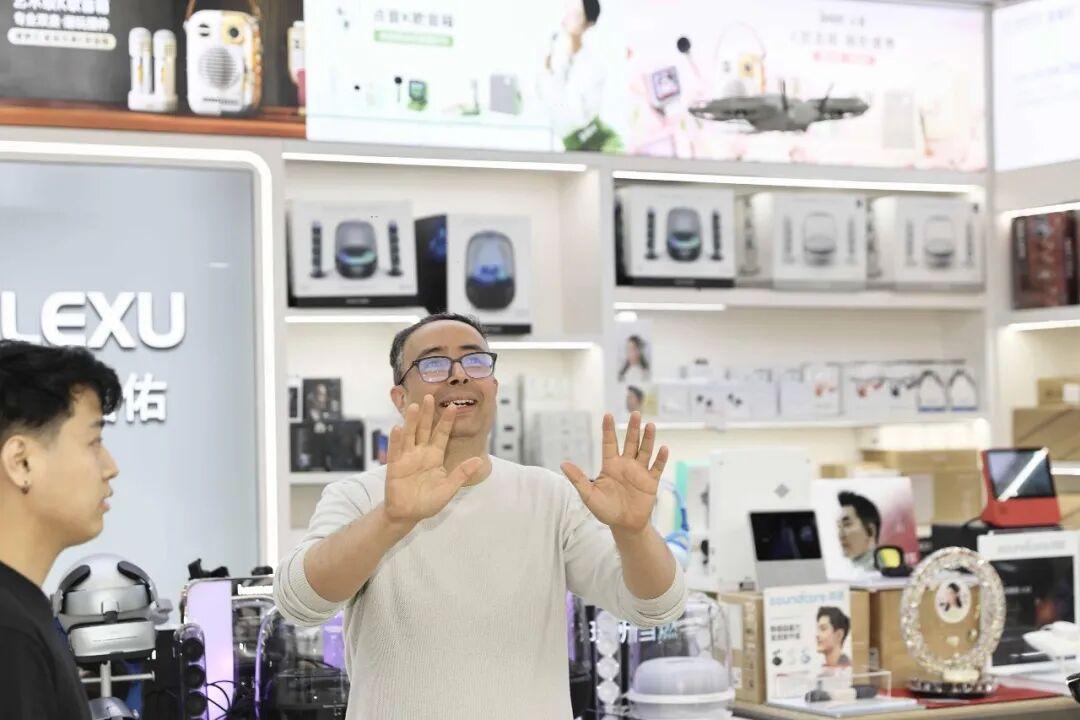 随后,卡雷姆走进泽艺达影像体验中心,感受了华强北深耕影像器材领域的专业底蕴;并在AUTEL道通智能门店,详细了解适用于测绘、巡检等领域的行业级无人机。从消费级航拍到工业级应用,深圳低空经济的硬核实力让他看到了“中国智造”的无限可能。