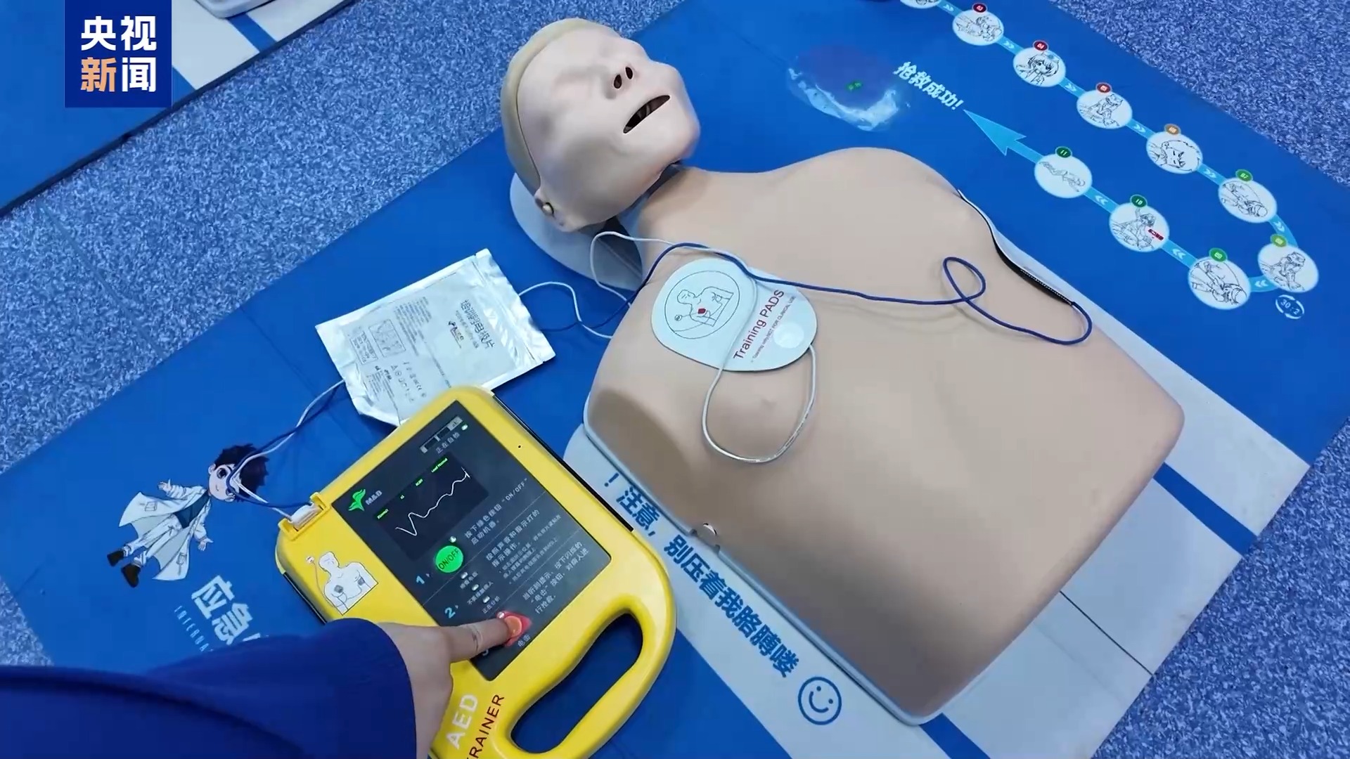 医生介绍,在有条件的场所,心肺复苏应尽早配合AED使用。作为自动体外除颤器,AED可自动分析心律,判断是否需要电击,非专业人员也能按照语音提示操作,同时继续按标准流程进行心肺复苏。