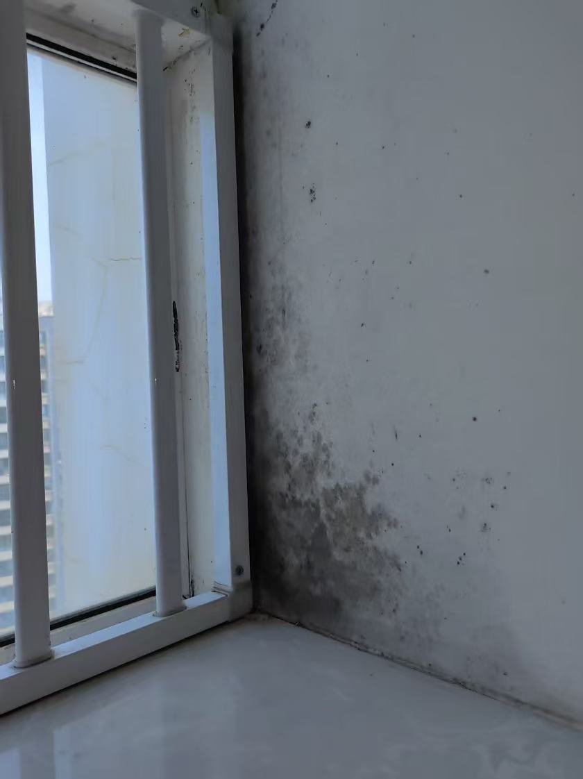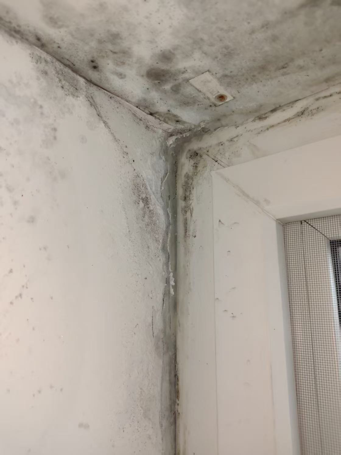 自2025年7月起,杨女士家窗墙接缝处持续渗水,每逢连阴雨,雨水倒灌进屋,墙面大面积发霉长毛。如今,一家人已在客厅打地铺居住超过一年,正常生活被彻底打乱。