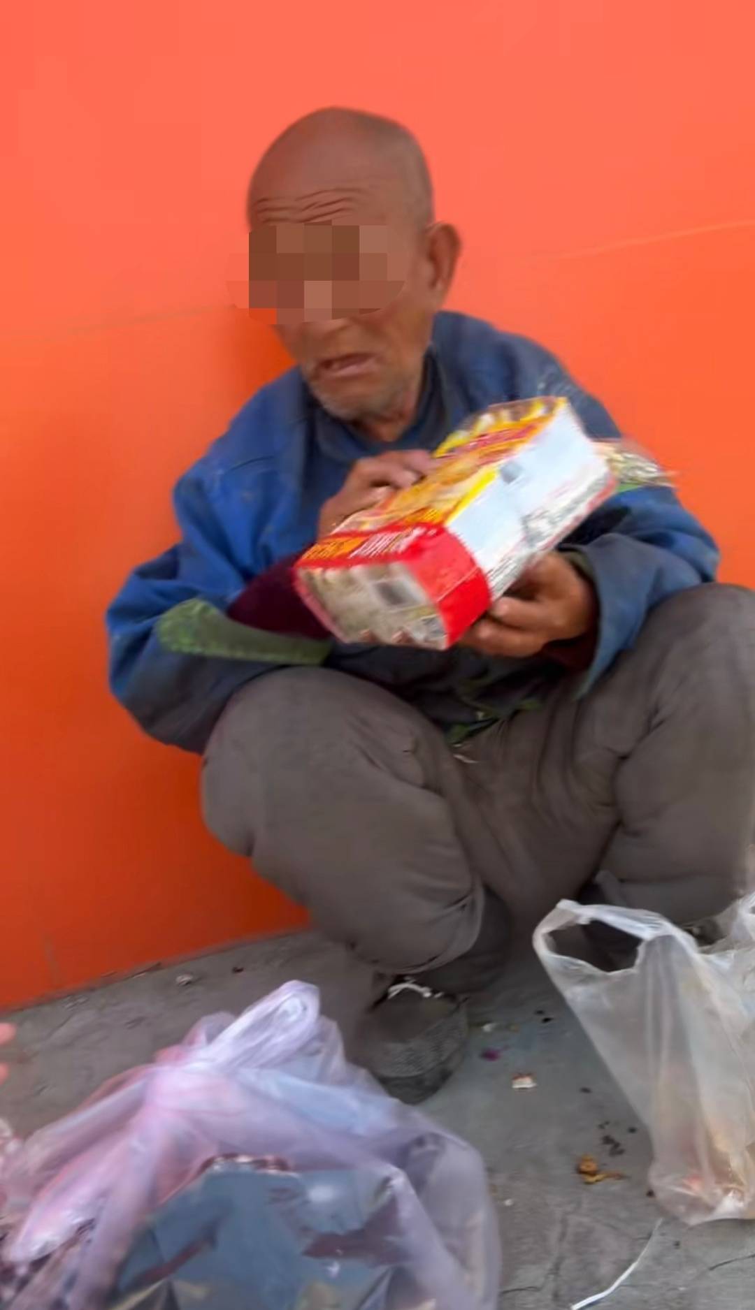 “当时他蹲在路边,眼神空0空的,看起来特别饿”。小刘向封面新闻记者回忆说,他第一次在校门口看见老人时,是自己上高一的时候。