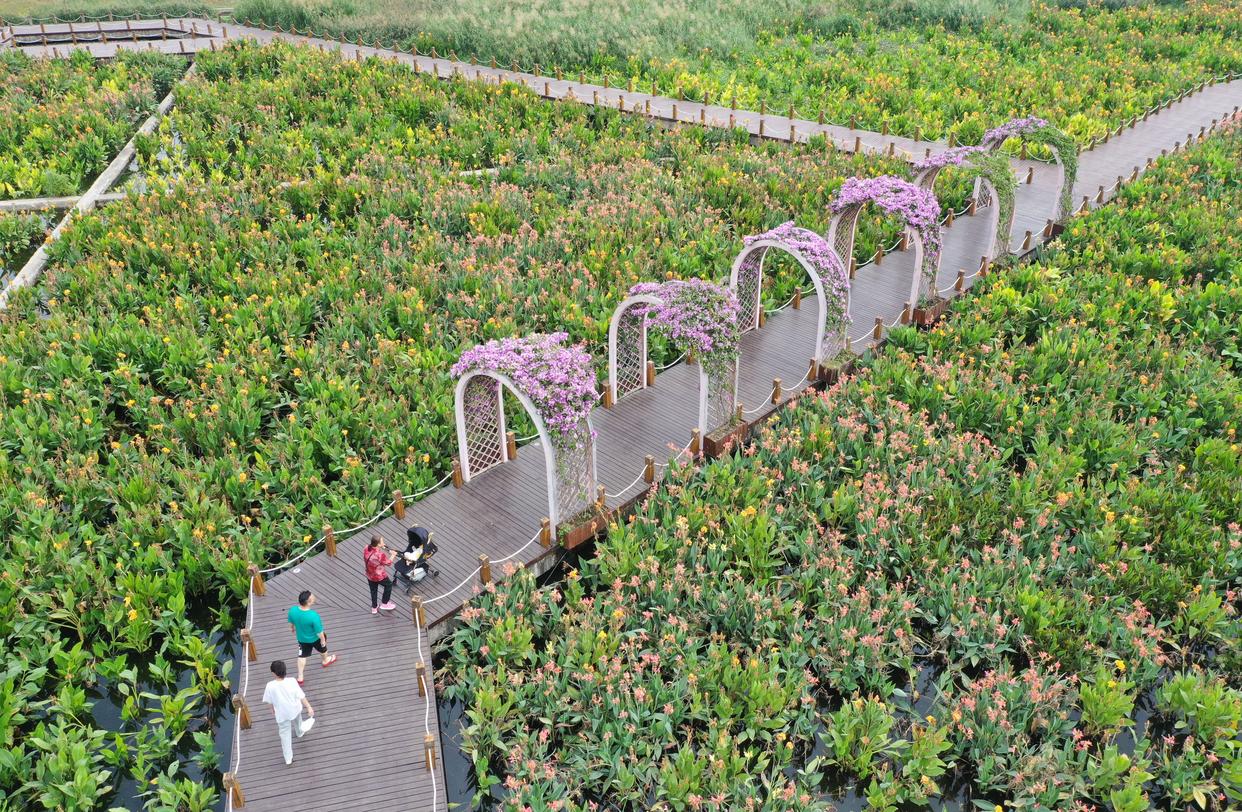 这是南宁市那考河湿地公园景观(无人机照片,2022年11月10日摄)。生活在这里的人们