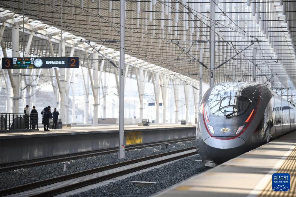 2025年12月26日,西延高铁首发列车从延安站驶出。新华社记者 张博文 摄
