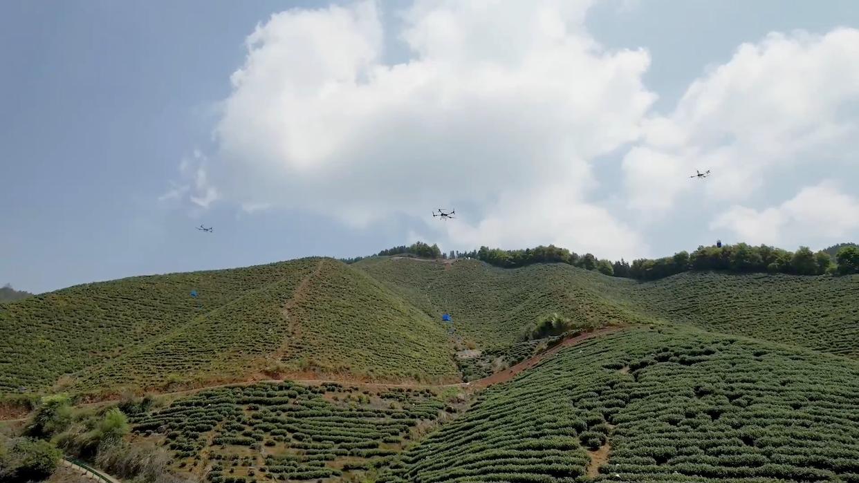 阳新县地处鄂东南丘陵地带,茶园大都在海拔500米以上的山地,坡陡路窄,交通不便。今年,当地农业部门首次组织起专业无人机团队,搭建起“空中茶路”。