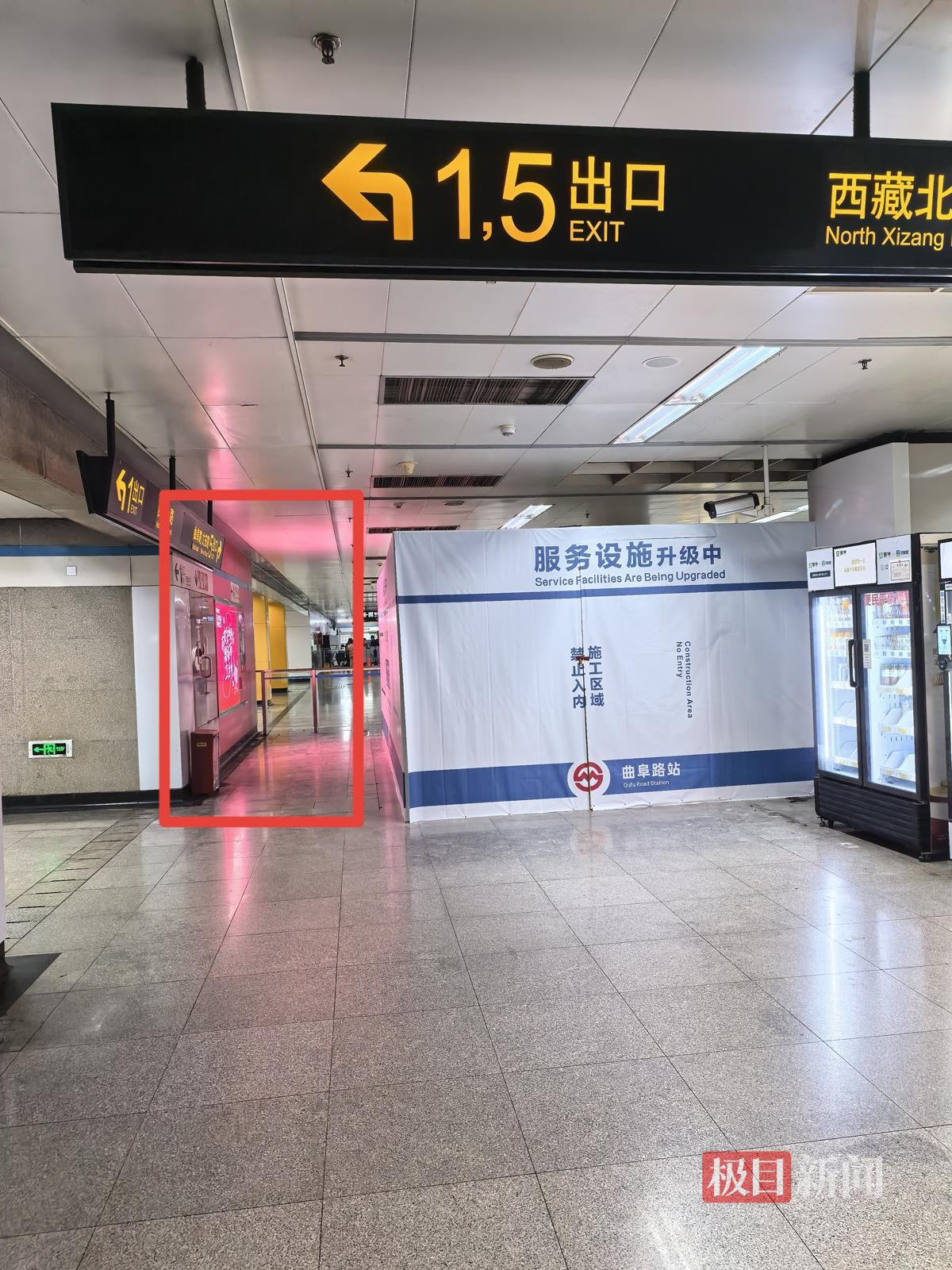 不过,极目新闻记者在现场发现,该台设备看起来与普通的广告灯箱区别不大,不算显眼,同时还被一处便利店建筑挡住了视野。地铁站内人群步履不停,几乎没有人注意到这台设备。