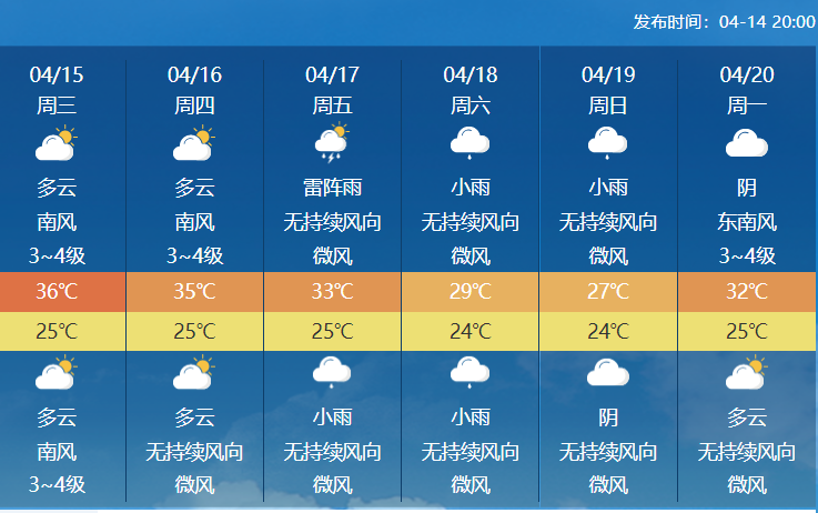 海口气温预报。