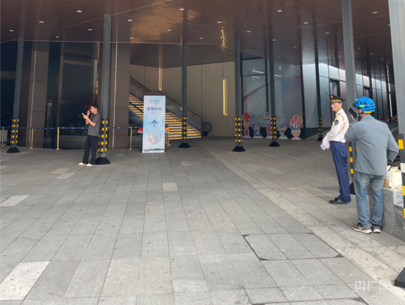 记者注意到,一楼直通营销中心的入口处只有两名保安值守,但两人位置并不集中:一名保安守在通往二楼售楼处的入口处,另一名则站在入口左侧稍远的位置。二楼售楼处内部未见保安人员。现场未见特殊装备或安检升级。
