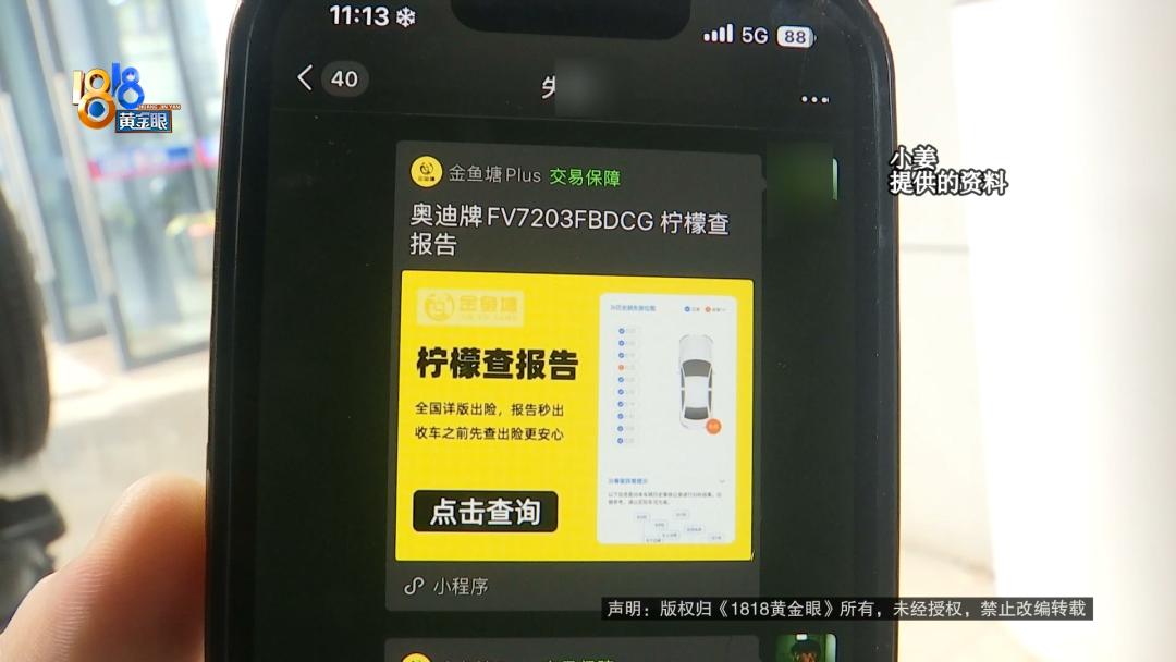 小姜:后面发现这个报告上面有问题,这报告只显示水箱框架换过。然后我自己叫我朋友查出来的这个记录,换过很多东西,然后我接受不了。