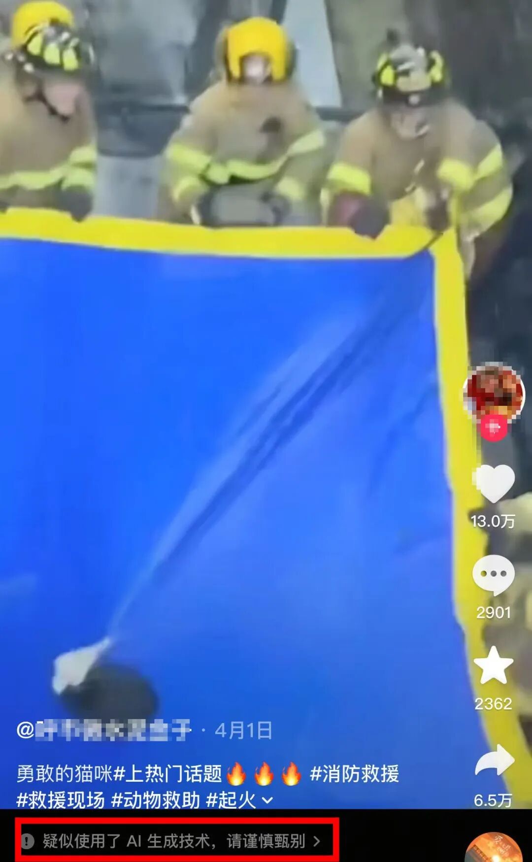 记者注意到,4月1日有网友发布过这条视频,视频下方提示“疑似使用了AI生成技术,请谨慎甄别”。