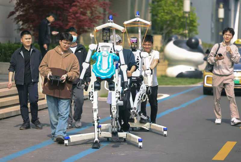 今年的机器人半马,除了大牌的机器人选手和队伍,还有不少个人组队的参赛队伍或者小公司赛队,未来机域亦朝游侠队就是其中之一。队长胡晓晨是机器人开发的爱好者,也是一家企业的创始人。“我现在还只是‘一人公司’,售价约18万元一台的机器人对于我们这种初创企业来说太贵,但我又想参加机器人半马,所以参加了未来机域社区。”胡晓晨说,社区免费提供机器人并教授相关课程,也就是说,让参赛者在这里对机器人进行二次开发,从而让机器人站上半马的跑道。