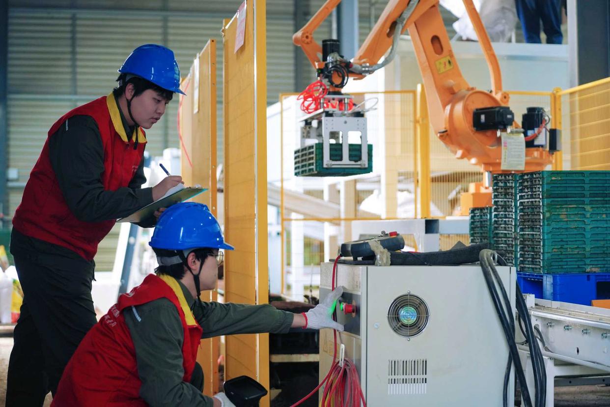 国网温州供电公司共产党员服务队到乐清汇一农事服务中心开展安全用电知识宣传。(章静 摄) 数智育秧对电力可靠性、稳定性要求极高,停电、电压波动、线路故障等任一问题,都可能延误育秧进度、影响秧苗品质。“今年,我们新投用的全自动化育秧流水线,1个机械臂每15秒就能完成10盘秧苗的摆盘工序,整条流水线每小时育秧量可达1000盘。但秧苗生长格外娇贵,温度差1℃、湿度差5%都会影响出芽率,全流程设备都离不开稳定电力保驾护航。”乐清市汇一农业发展有限公司负责人、“90后”新农人陈乐斌介绍。
