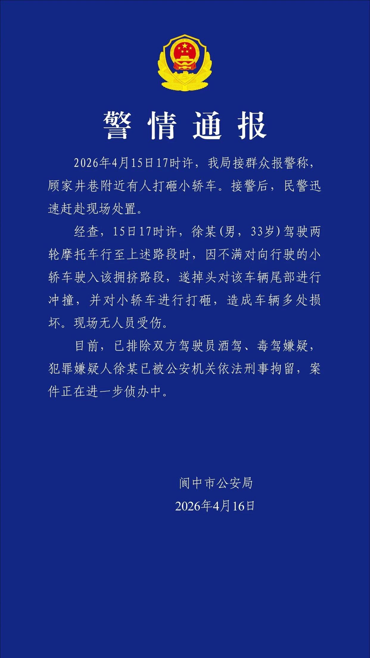 四川阆中市公安局4月16日发布警情通报: