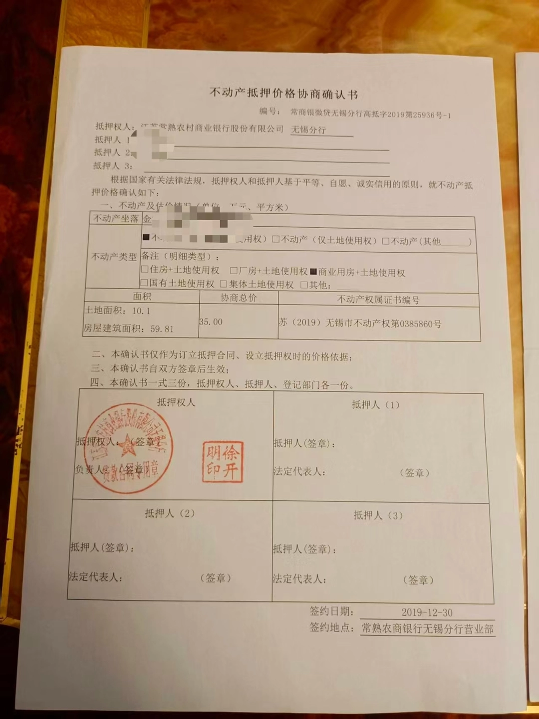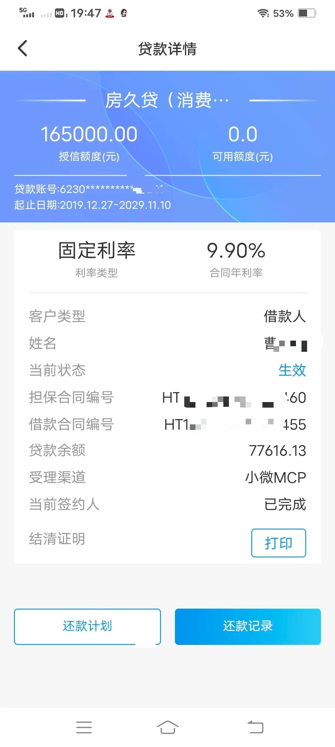 4月13日,江苏市民曹先生向极目新闻记者反映,他也有着相似遭遇。曹先生称,2019年他在无锡购置了一套公寓,房价54万元,首付了20万元,通过中介在常熟农商银行无锡支行办理了两笔贷款。一笔17.5万元,期限5年,现已结清;另一笔16.5万元,期限10年,目前仍在还款中。