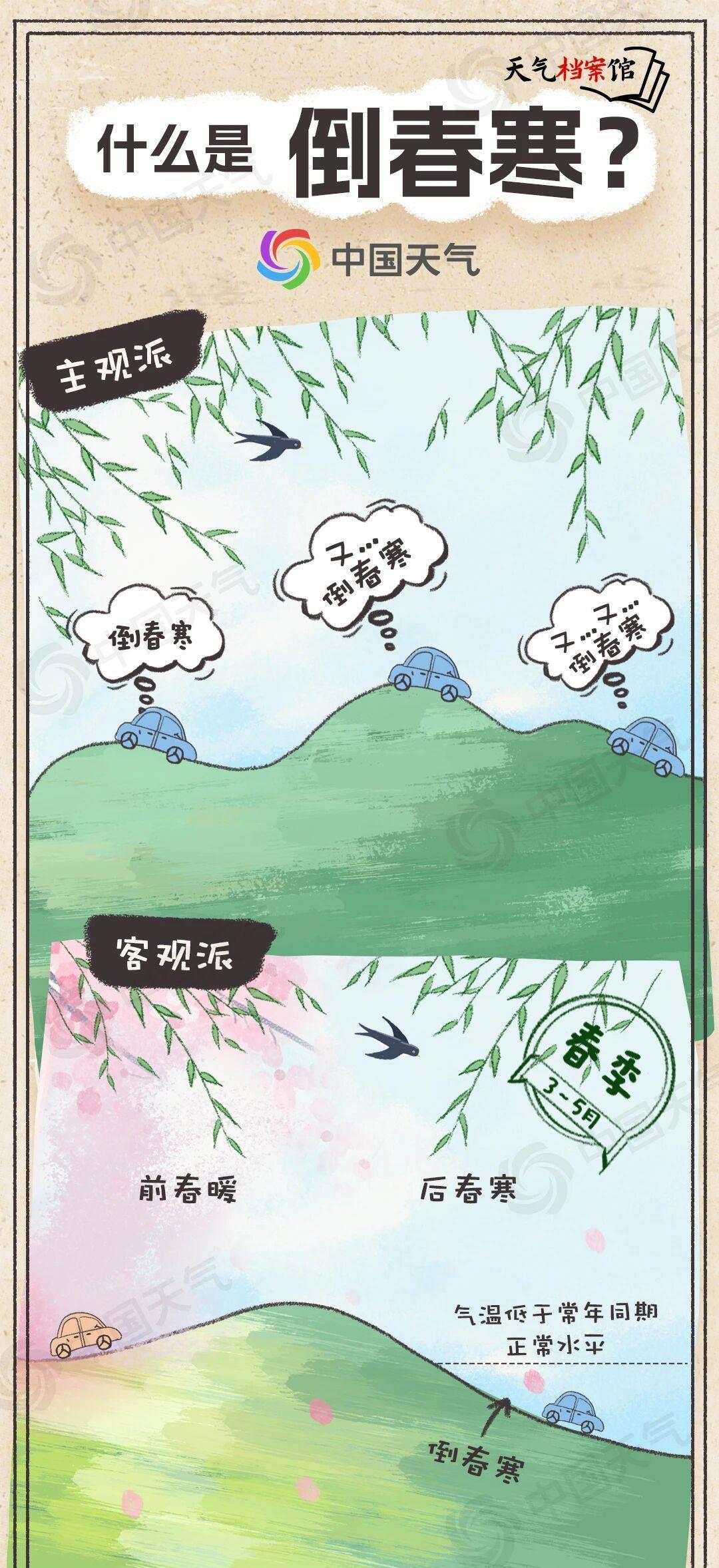 降温过后,冷空气将会一扫前期暖意,不少人可能会有“倒春寒来了”的感受。从主观感受上来说,春季出现乍暖还寒、气温骤降,常会被认为是倒春寒。不过,气象学上的倒春寒是指每年春季(3月至5月)出现的前期暖后期冷,且后期气温明显低于正常年份的现象。而且,“倒春寒”不单单意味着“气温跳水”,更是一种容易导致农业低温冻害的气象灾害。